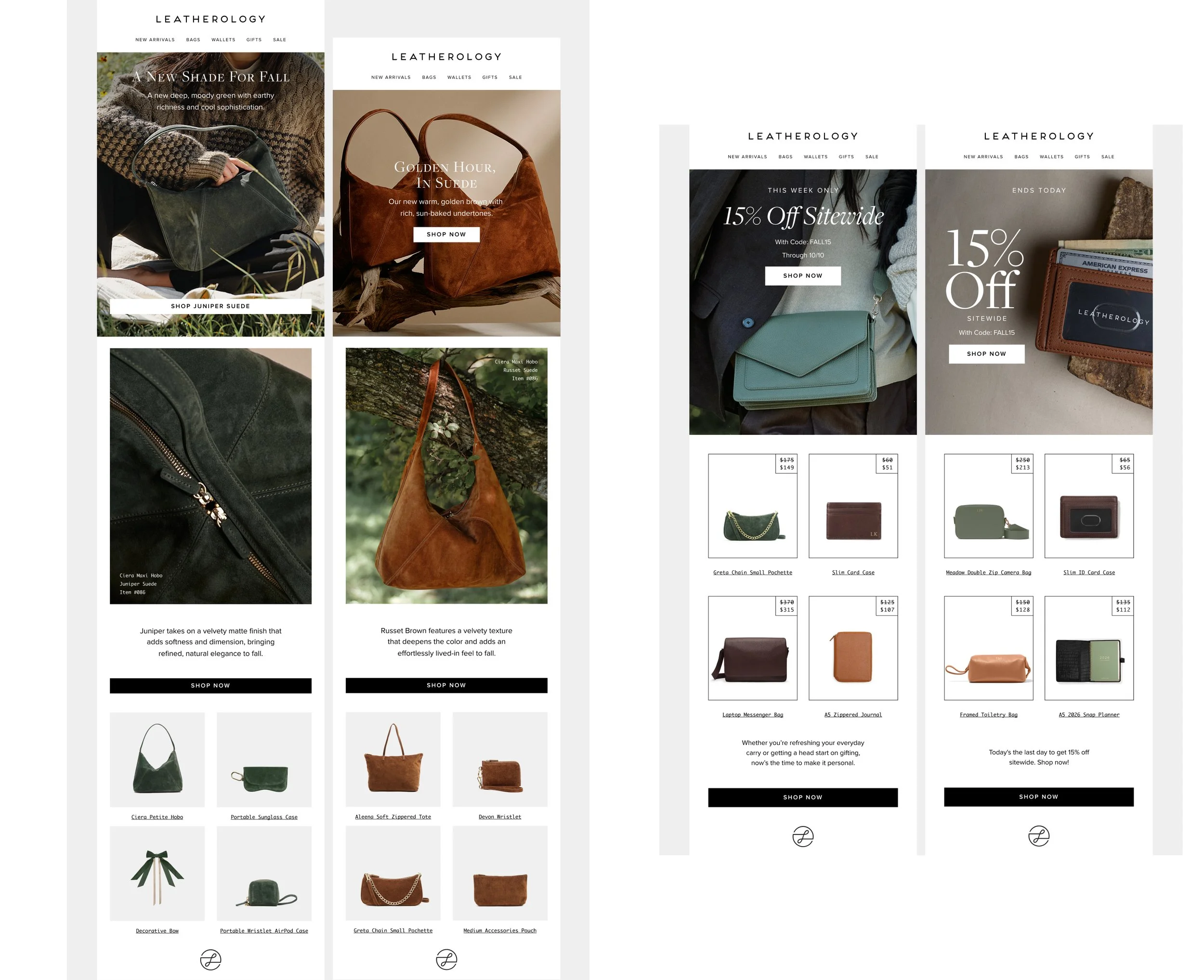 For the 2025 Leatherology Fall Campaign, our goal was to reignite brand excitement and inspire customers through the debut of our new seasonal color collection—Moss, Saddle, Juniper Suede, Russet Suede and Forest Croc. This campaign was crafted to elevate storytelling, attract new audiences, and re-engage existing customers by delivering cohesive, compelling creative across paid, owned, and earned channels.